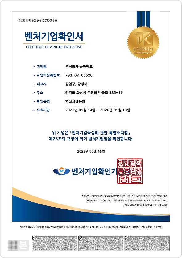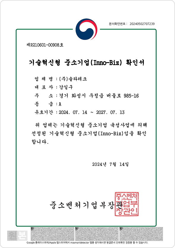 • 기술혁신형 중소기업(Inno-Biz) 확인서